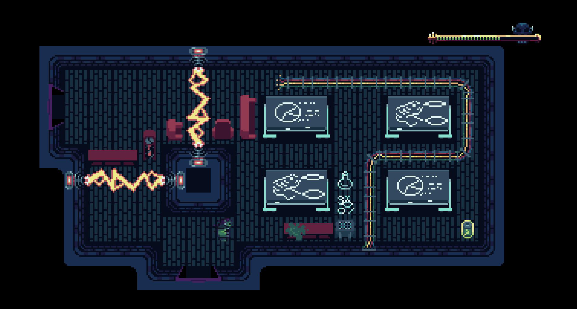 A mad scientist trapped in her own facility creates a monster to go out and get what she needs for an even greater creation. Collect all the parts she needs, use batteries and electrical beams at just the right time to maintain the electrical charge that powers your undead body, and avoid the traps and creatures that reside here.